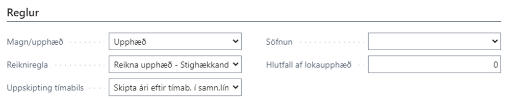Söfnun | Hægt er að hafa þennan reit auðan eða velja Draga frá fyrri færslu. Ef valið er að draga frá fyrri færslu er tekið tillit til fyrri færslna við útreikning. |