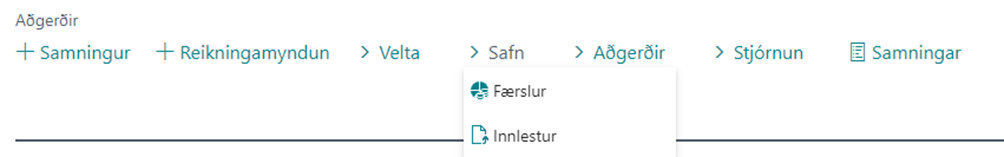 Safnfærslur eru gögnin sem söfnin reikna gjöldin út frá og geta verið ýmist upphæðir eða magn. Safnfærslur er hægt að slá handvirkt inn eða lesa inn