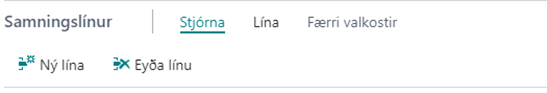 Stjórna | Hér er hægt að eyða línu og stofna nýja línu í samningi. |