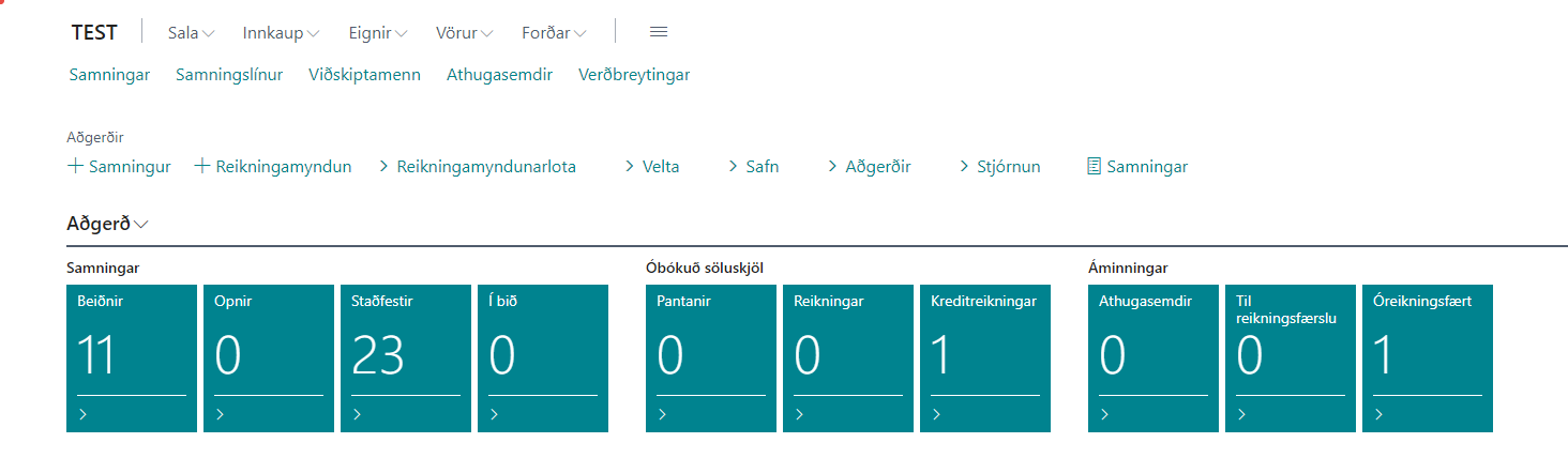 Bunkar fyrir samninga á mismunandi stigum, óbókuð söluskjöl tengdum samningakerfinu og athugasemdum má síðan sjá á miðju hlutverkinu og þar má sjá með augljósum hætti fjölda þeirra atriða sem tilheyra hverjum bunka fyrir sig. Ef smellt er á bunka þá opnast listi með afmörkun á viðeigandi bunka.