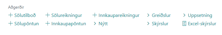 Algengir flipar í borðanum eru Vinnsla, Skýrsla og Nýtt fylgiskjal.