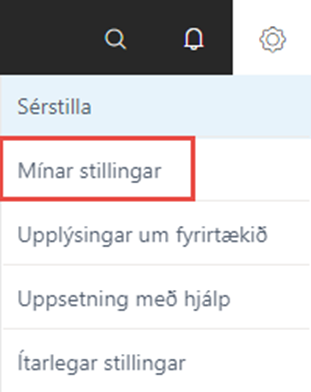 Til að breyta mínum stillingum er tannhjólið í hægra horninu uppi valið og smellt á Mínar stillingar eða Alt+t.