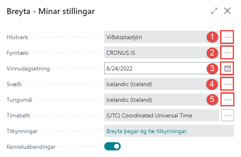 Mikilvægt er að stilla svæðið Icelandic til þess að fá rétt format á dagsetningar og tölur fyrir Ísland