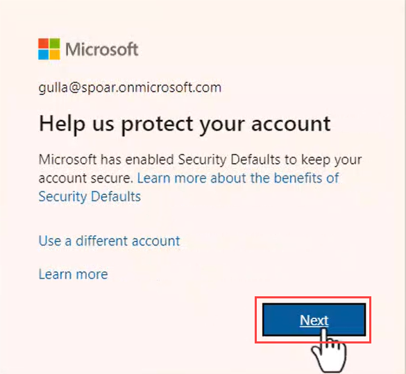 Þá smelliru aftur á next, við það prófar Microsoft að senda auðkenninga beiðni í símann.