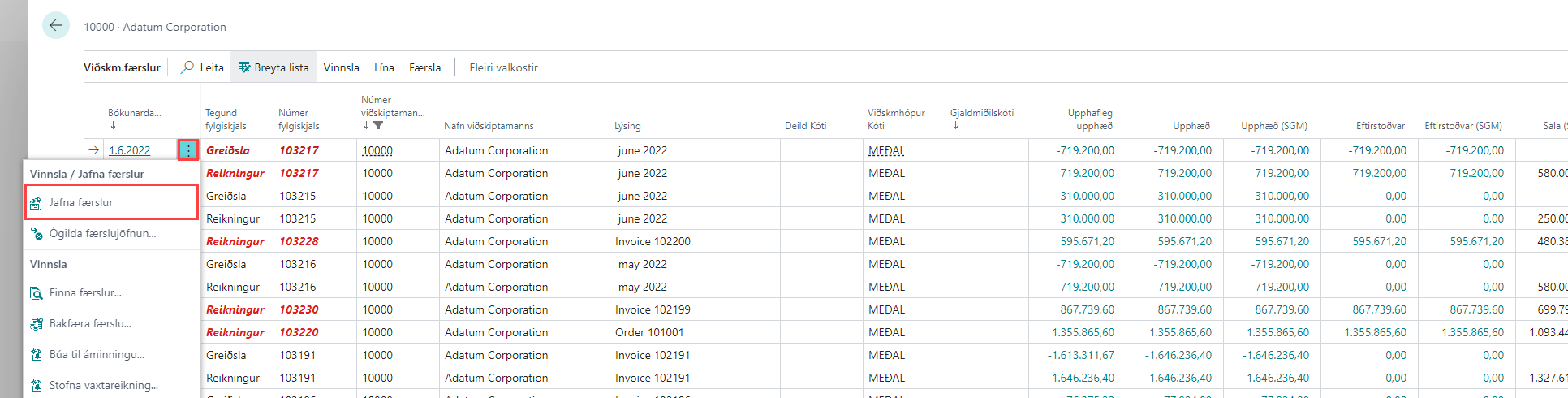 Jöfnun færslna á Viðskiptamönnum / lánardrottnum