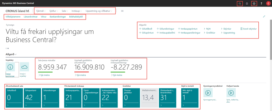 Hlutverkið skiptist í nokkur svæði, sem að hluta til er hægt að sérstilla að þörfum hvers og eins.