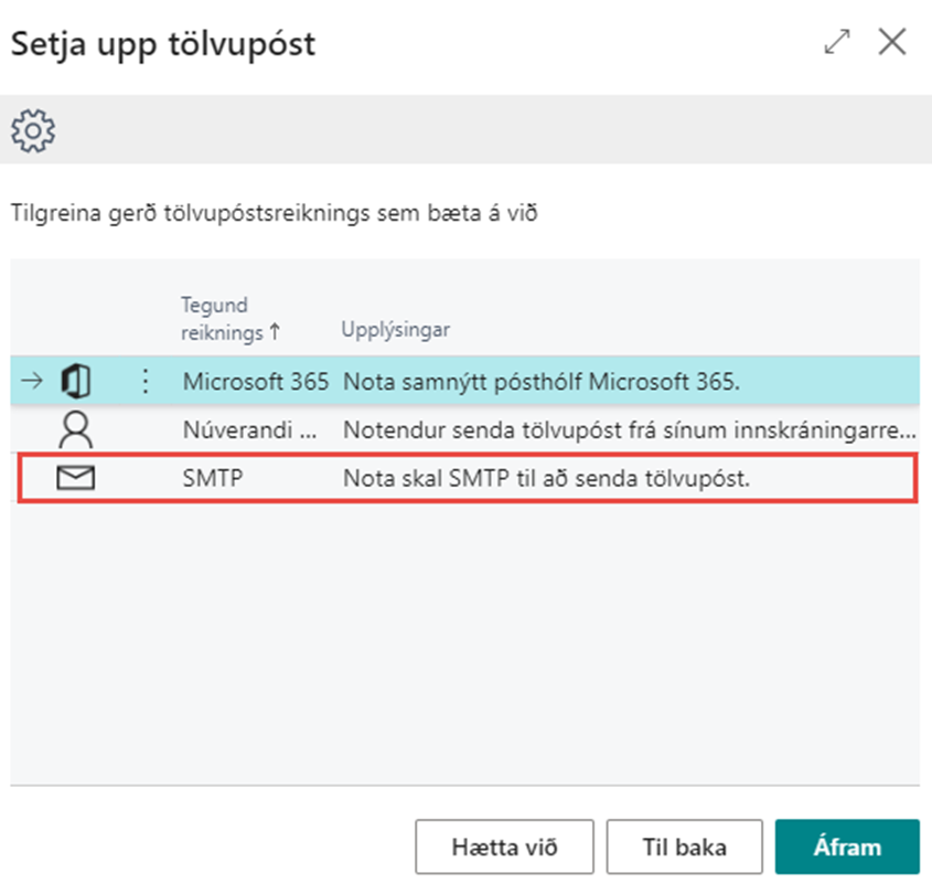 Þessi aðferð er notuð ef nota á SMTP til að senda tölvupóst.