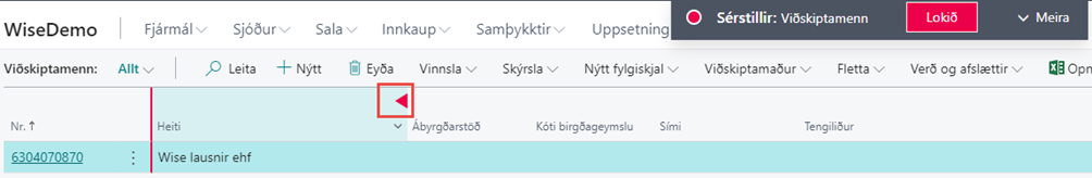 Hér fyrir neðan er sýnidæmi ef bæta á reitnum Nr. utanaðkomandi skjals inn í færslubók.