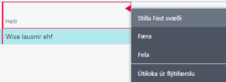 Ef smellt er á rauðu örina er einnig hægt að stilla reitinn sem fast svæði eða fela reitinn.
