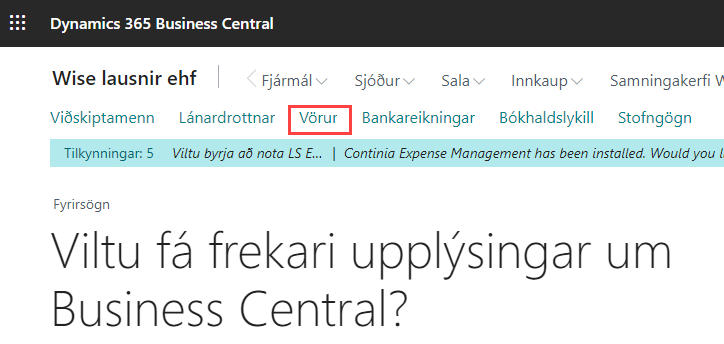 Á myndbandinu hér að neðan verður farið í gegn um það hvernig nýjar vörur/birgðir eru stofnaðar inn í Business Central.