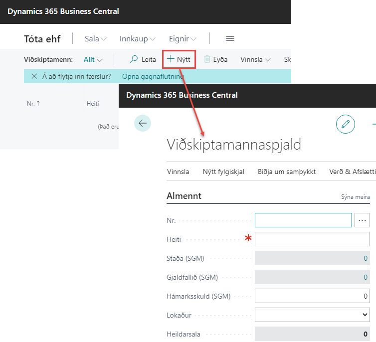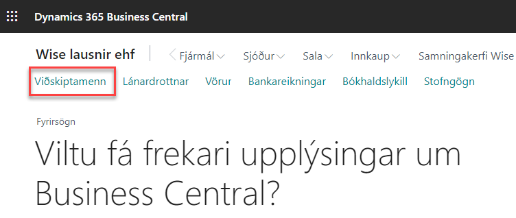 Á myndbandinu hér að neðan verður farið í gegn um það hvernig nýr viðskiptamaður er stofnaður inn í Business Central