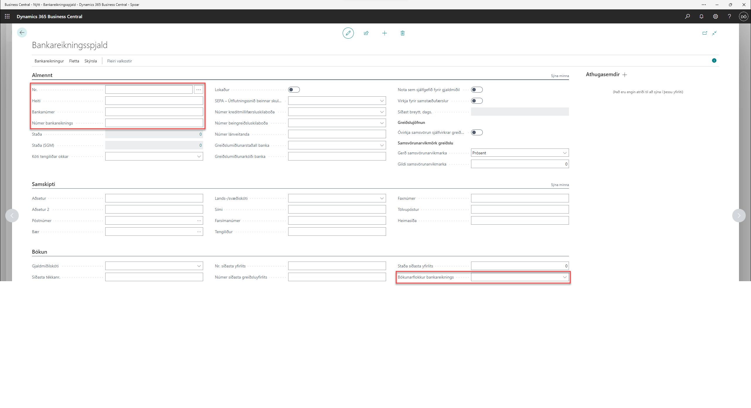 Uppsetning á bankareikningi