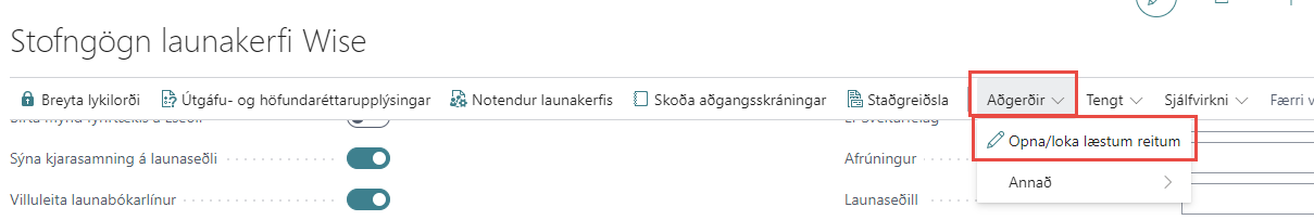 Reitirnir fyrir veflyklana eru yfirleitt læstir fyrir breytingar og þarf að fara í Aðgerðir - Opna/loka læstum reitum til að opna þá