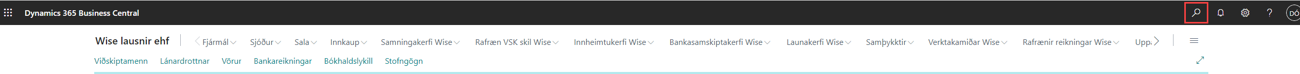 Byrjað er á því að fara í leitina uppi í hægra horninu eða (ALT+Q).