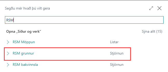 Skrifar inn í leitargluggan “RSM” og velur RSM grunnur