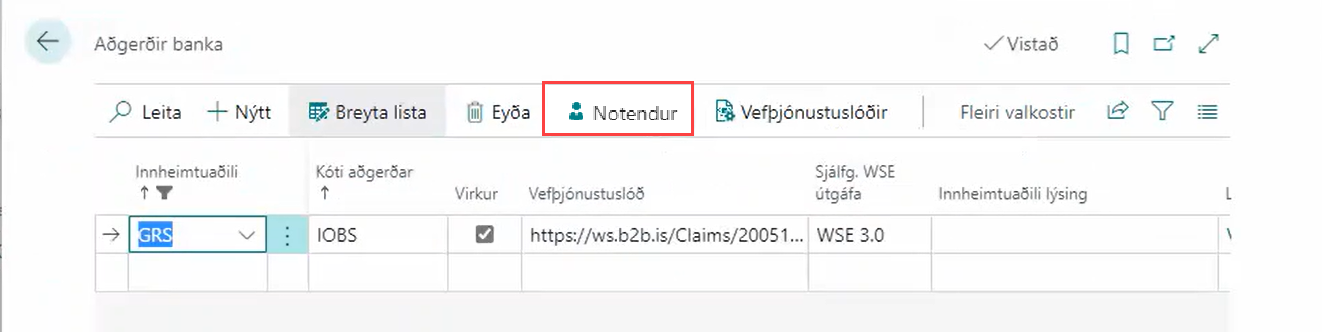 Þá er valinn sá innheimtuaðili sem á við og smellt á Notendur