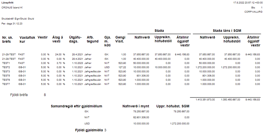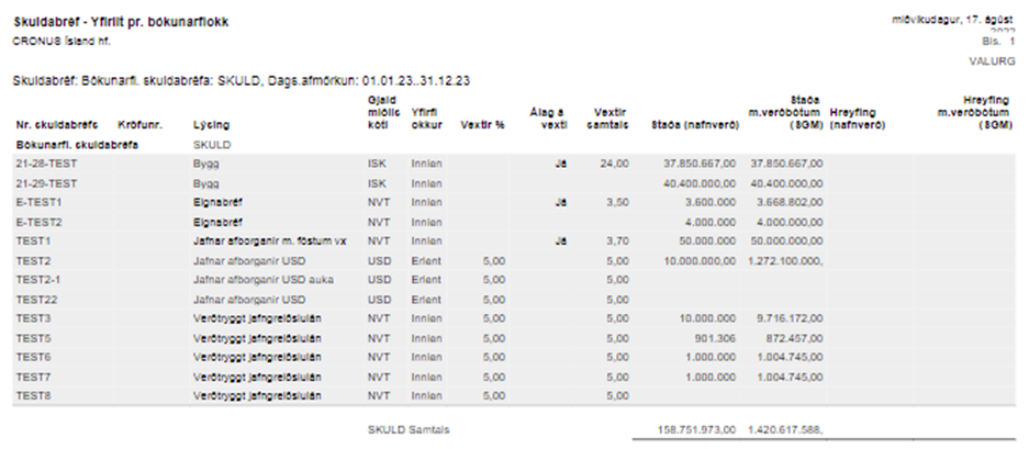 Sýnir yfirlit yfir virk bréf í kerfinu með hliðsjón af bókunarflokkum.