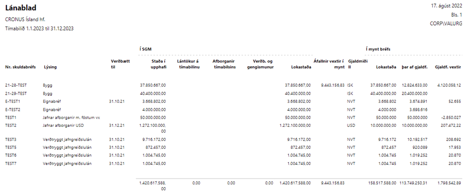 Skuldabréf - lánayfirlit