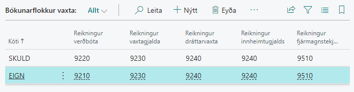 Í þessari töflu er sett upp fjárhagsstýring fyrir vexti, verðbætur og gengismun, dráttarvexti og innheimtugjald.