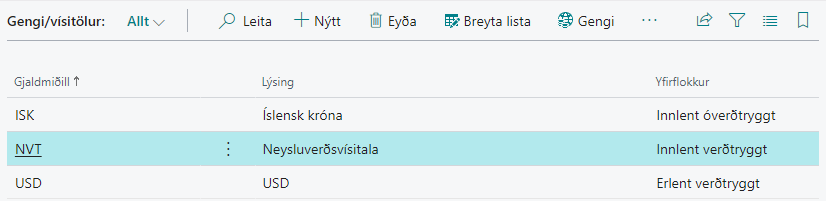 Erlent verðtryggt | Segir til um að gjaldmiðilskóti sé erlendur gjaldmiðill. |