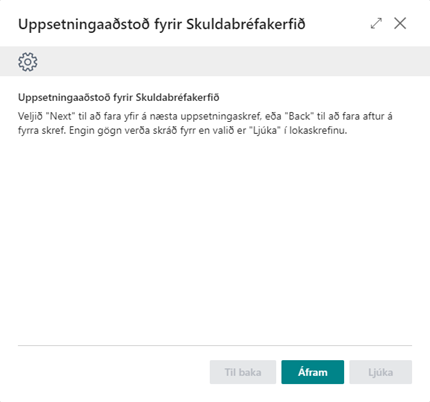 Til að byrja með þarf að setja Skuldabréfakerfi Wise upp í Business Central.