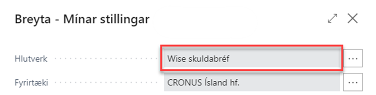 Fyrsta skref er að breyta hlutverkinu í Wise skuldabréf en það er gert undir Mínar stillingar (Alt+T)