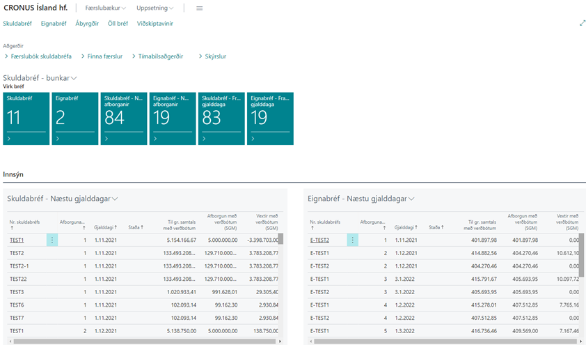 Í hlutverki Skuldabréfakerfis eru allar aðgerðir kerfisins ásamt tengdum aðgerðum aðgengilegar á einum stað.