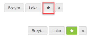 Þegar notandi er staddur í kerfinu; í verkefni, skrá eða viðskiptavini er stjarna ofarlega hægra megin sem smellt er á til að bæta við í flýtileiðir. Stjarnan er grá/blá (1) en verður græn/hvít (2) þegar notandi bætir því við flýtileiðir.