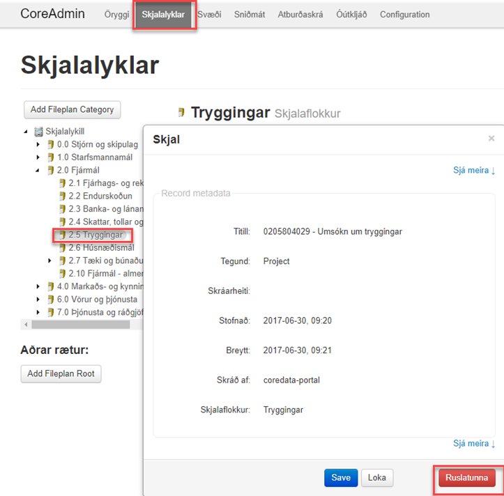 Hugtök og uppbygging skjalaflokkunarkerfa CoreData