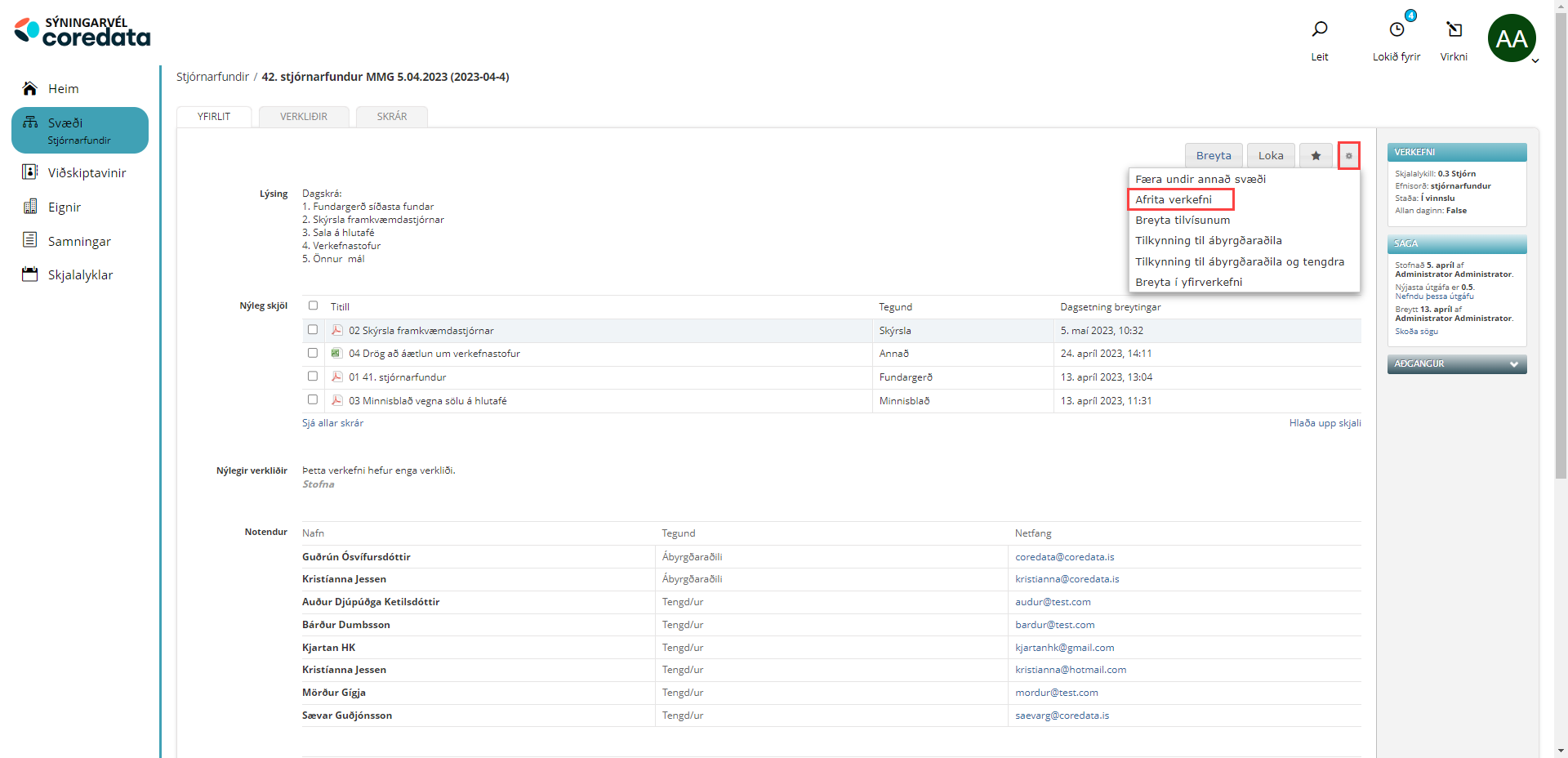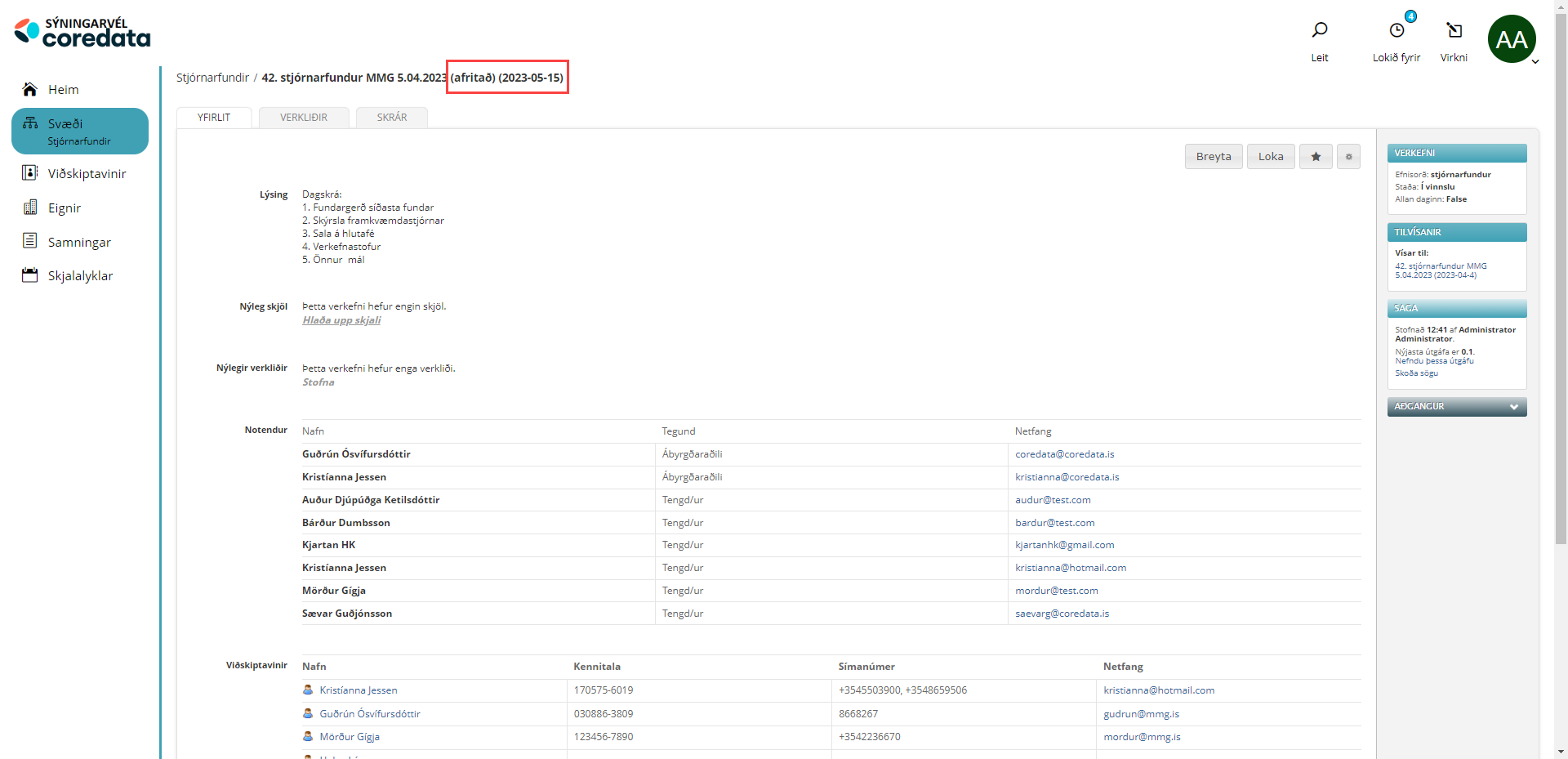 Ef þið hafið einhverjar spurningar eða ábendingar, endilega sendið okkur línu á þjónustuborðið: coredata@coredata.is