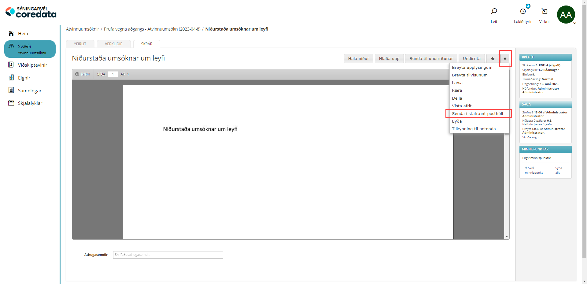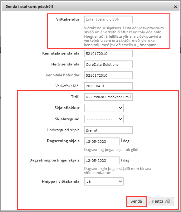 Senda skjal í stafrænt pósthólf