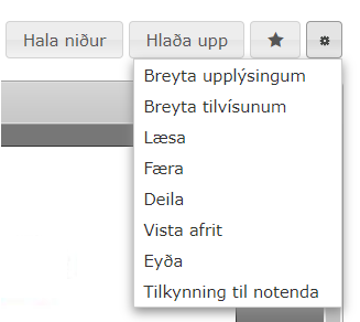 Hægt er að Breyta, Breyta mörgum, Færa, Deila, Eyða og Hala niður mörgum skjölum í einu.