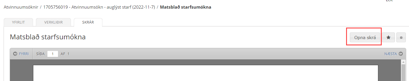Skjalið opnast þá í því forriti sem við á, t.d. opnast *.doc sjálfkrafa í Word, *. xls skjal í Excel og svo framvegis.