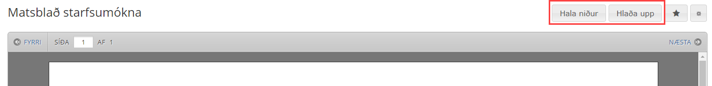 Hala niður – boðið er upp á að vista skjal í tölvu notandans og þá er engin tenging við CoreData. Hér þarf að Hlaða upp skjali í CoreData eftir breytingar. Engin tenging er við CoreData Desktop.