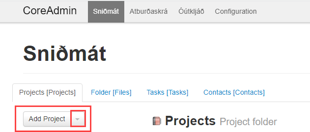 Ný verkefnasniðmát eru skráð beint undir Projects með því að smella á Projects og svo á örina hjá Add Project.