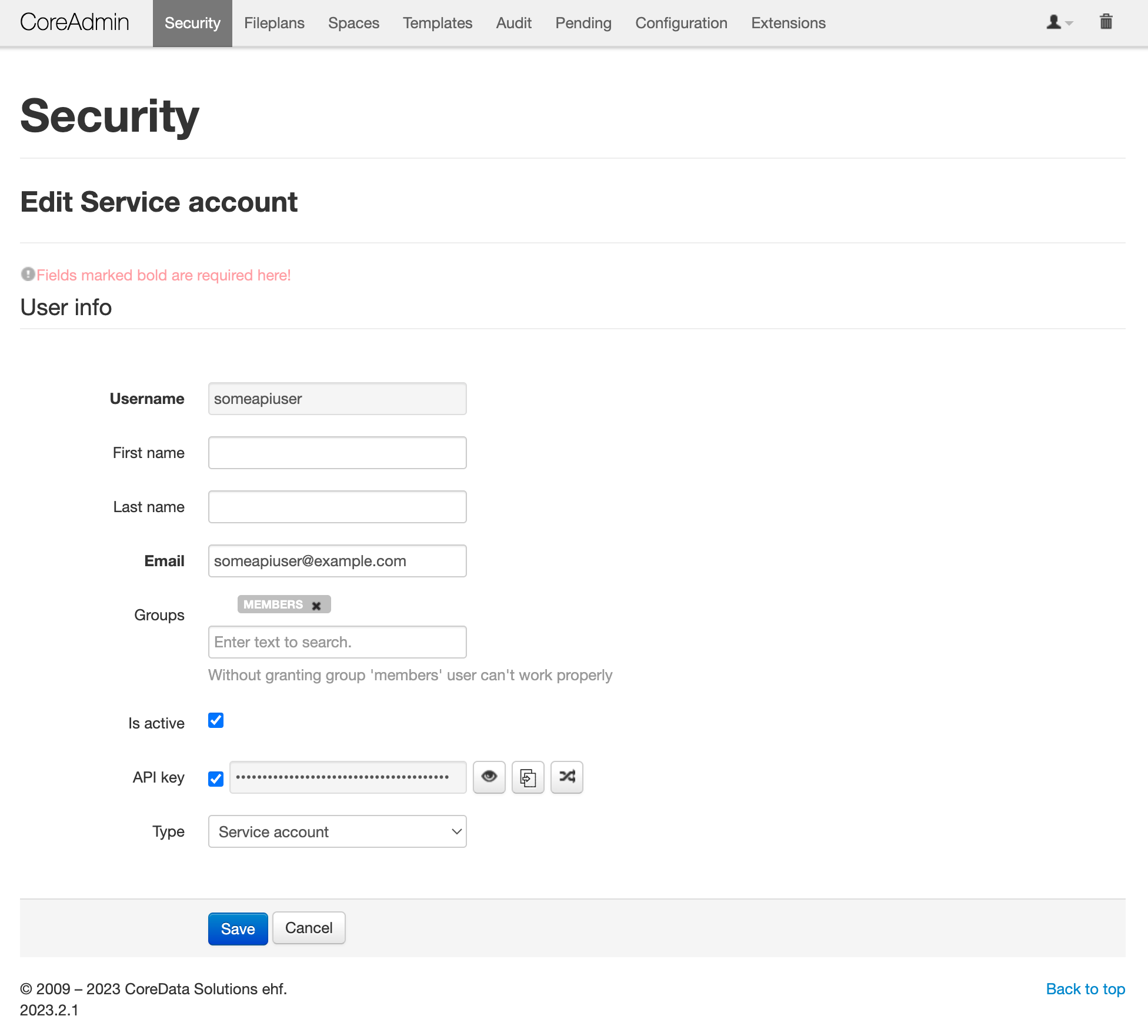 The pair of username and their API key can be used to authorise CoreData API calls.