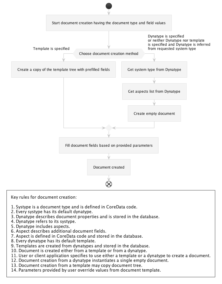 The high-level document creation algorithm is following: