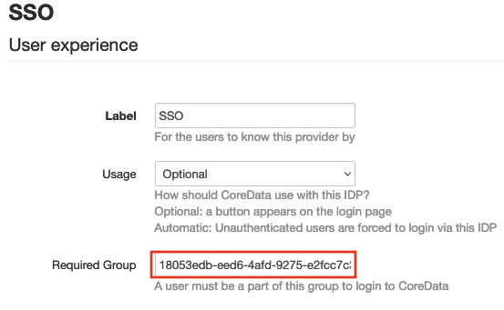 Tip: if you do not see this tab - please contact CoreData support so that SSO extension would be enabled for you.