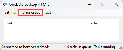 Þá opnast þessi gluggi og þar er smellt á Diagnostics: