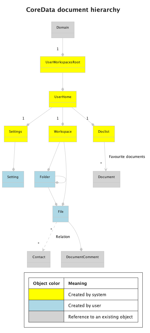 User can mark particular documents as favourites. User’s favourite documents are referred to by Doclist document in the user’s UserHome. The Doclist can contain such document types: