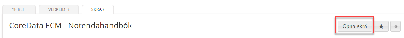 Hafi viðkomandi notandi heimild til þess að breyta skrám þá birtist í CoreData vefviðmótinu hnappurinn Opna skrá þegar smellt er á skrá/skjal. Þegar smellt er á hann opnast viðkomandi skrá í því forriti sem við á. Allar breytingar sem vistaðar eru í forritinu vistast þá beint inn í CoreData. Notandi þarf því ekki að hala skránni niður til að vinna í henni né heldur hlaða henni aftur inn í CoreData eftir breytingar.