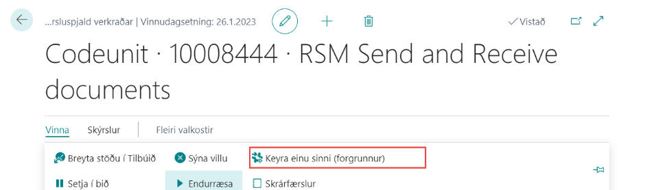 RSM býður upp á setja upp verkraðir bæði fyrir sendingu og móttöku. Við það sendast allir reikningar undir Ósendir reikningar sjálfkrafa og/eða verkröðin sækir alla reikninga frá skeytamiðlara og þar eru þeir undir Móttekin skjöl. Áður en verkröðin er sett upp þarf að fara í RSM grunn og velja Uppsetning á verkröð.