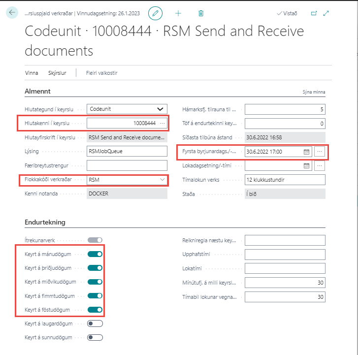 Sækir rafræn skeyti sjálfkrafa | Ef hakað er í þetta mun verkröðin sækja reikninga. |