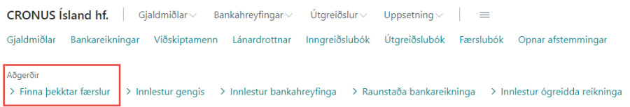 Aðgerðina er að finna undir Aðgerðir > Finna þekktar færslur.