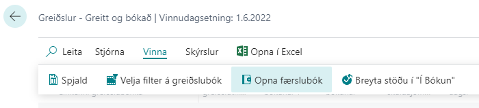 Breyta stöðu Í bókun | Þessi aðgerð breytir stöðu á valinni greiðslu úr Greidd í Í bókun þaðan sem hægt er að endurbóka hana. |