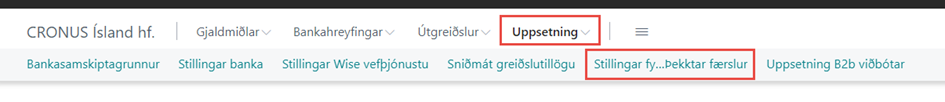Færslubókin sem Þekktar færslur eiga að fara í gegnum er sett upp í Bankasamskiptagrunni.