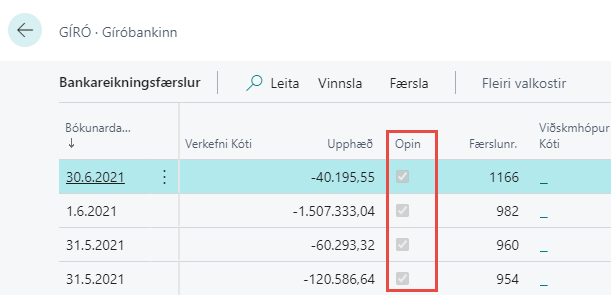 Þegar lokið hefur verið við að jafna allar færslur er yfirlitið bókað. Við bókun er bankareikningsfærslunum lokað.