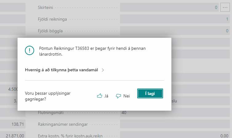 9. Extra kostnaður ekki að bókast / reikningur myndast ekki