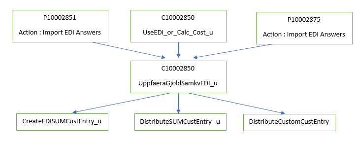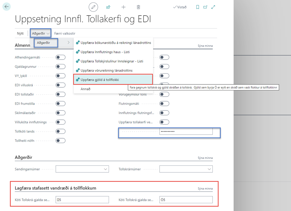 Til þess að EDI gjöld uppfærsti úr skuldfærsluskeyti frá Tollinum þá þarf að vera búið að haka í reitinn “Register EDI Difference” í Tollkerfis Grunni, einnig þarf að vera skráður munur á EDI gjöldum í tollskýrsluhaus (“Diff. in EDI Customs Charges”), en það hak kemur á tollskýrslu haus ef það er munur á útreiknuðum og innsendum gjöldum (gerist í C10002801 → CheckFees_u).