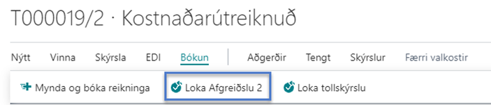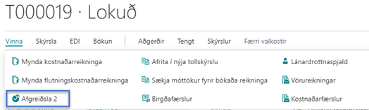 Þegar Afgreiðsla 2 hefur verið tollafgreidd er hægt að loka Afgreiðslu 2.